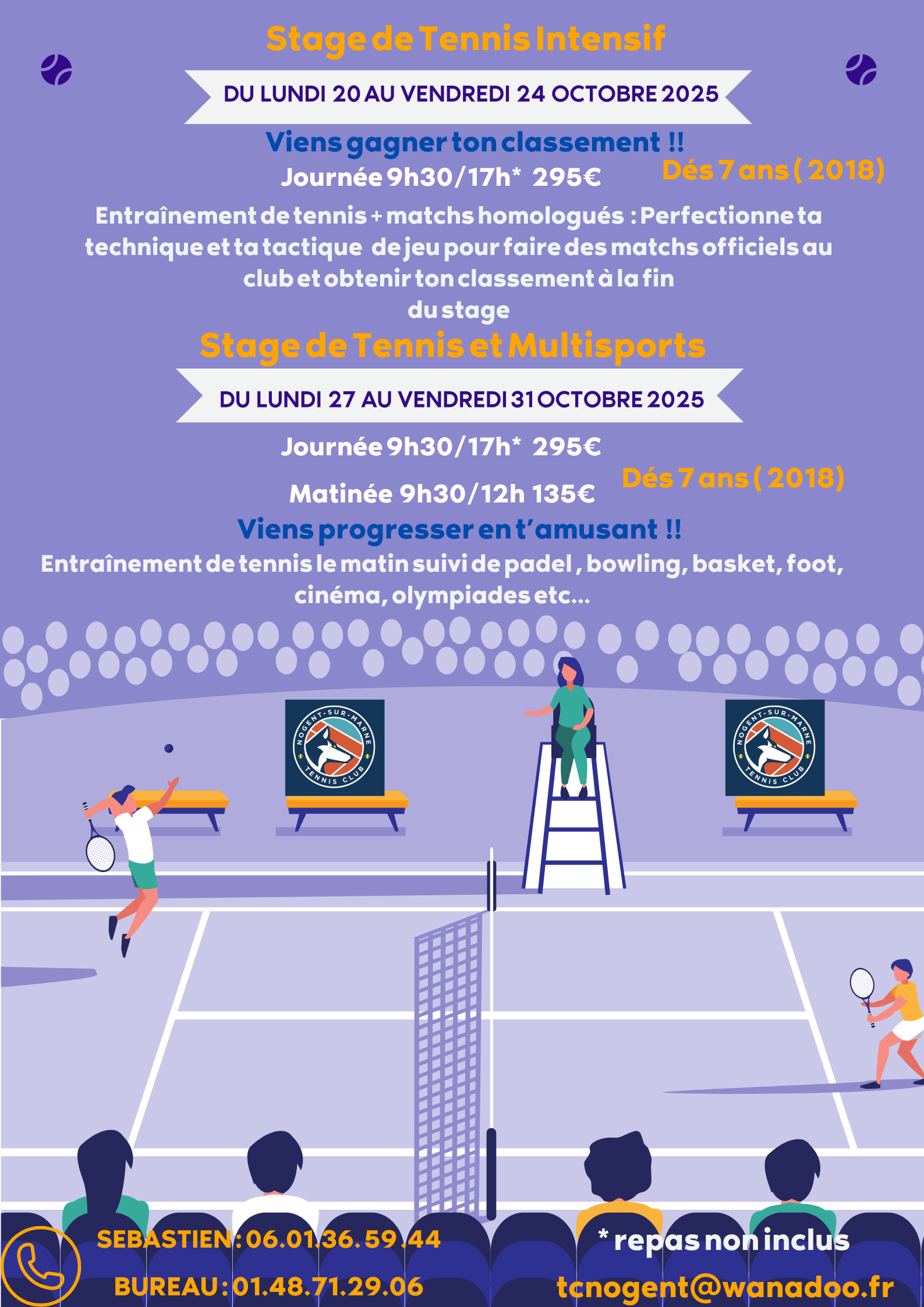 ** sous réserve d’un nombre suffisant d’inscrits par groupe en fonction du niveau et des disponibilités (courts, enseignants et participants)